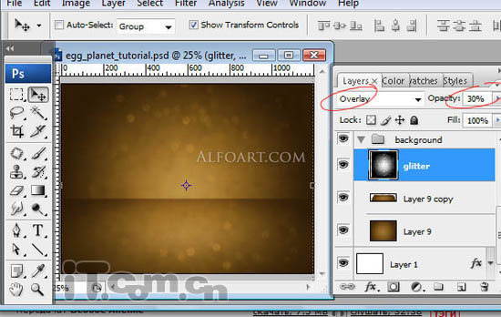4、设置图层的混合模式为叠加,不透明度为30%。