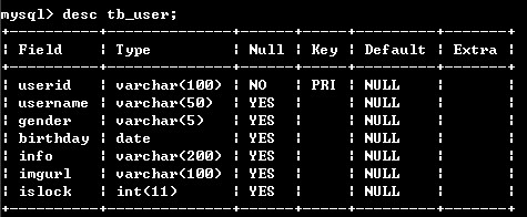 我们希望能够对这张表,利用setUserid("11111"),即可以设置userid;getUserid()既可以获得对象的userid。所以,我们需要建立model对象,与数据库中的表对应。