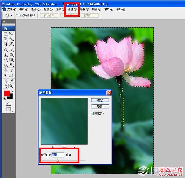 3、执行选择--反向(Shift+Cttl+I),执行滤镜--模糊--高斯模糊--数值为8,最后记得保存就可以了