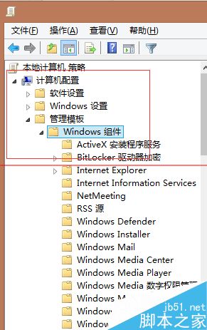 4、进入组策略,依次点击[计算机管理][管理模版][Windows组件]