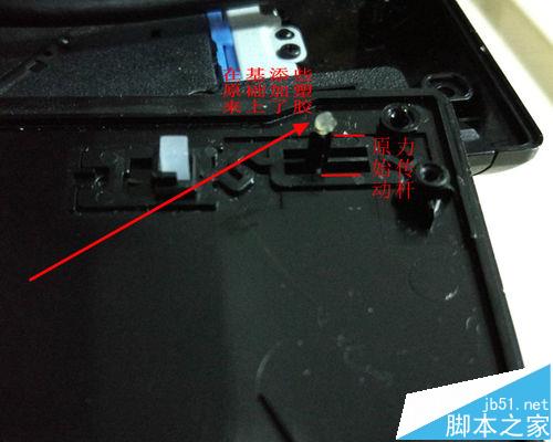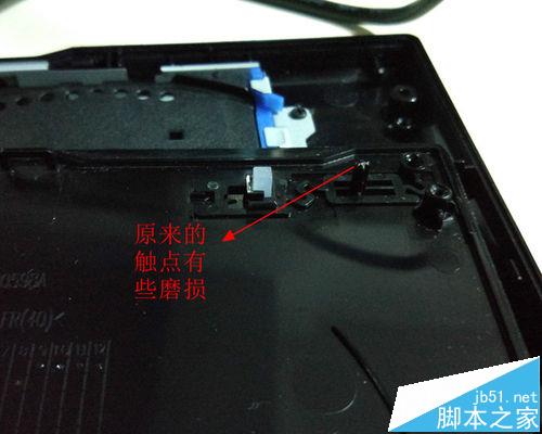 8、仔细看,前盖刻录光驱的开关接触点有些磨损