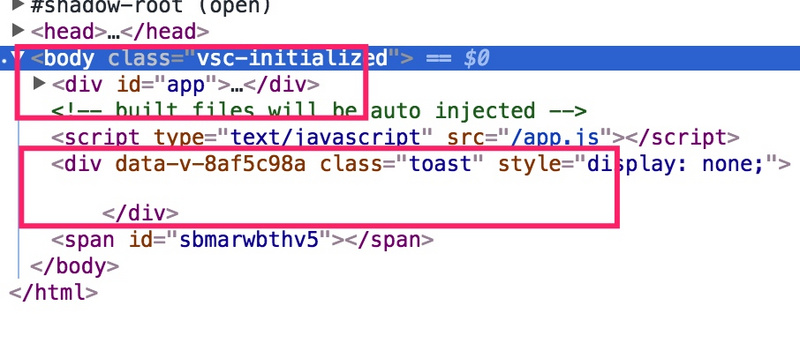 可以看出来,loading是显示的写在app.vue模板里的,而toast并没有作为一个组件写入,仅仅是通过一个方法控制显示。