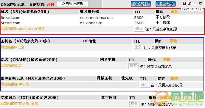 最下面的“文本记录(TXT)”是TXT记录,TXT 记录一般指为某个主机名或域名设置的说明,用到的极其少,我至今还没使用过也不知道它有什么用,所以在这里不做说明。