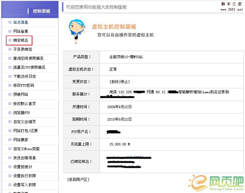首先登陆主机的管理页面,进入虚拟主机控制面板,可以看到空间的所有信息: