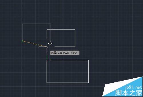2、然后再来看一下CAD里面对齐命令,对齐完毕后两个矩形的端点是重合在一起的,而不是如AI里面两个矩形分开对齐。