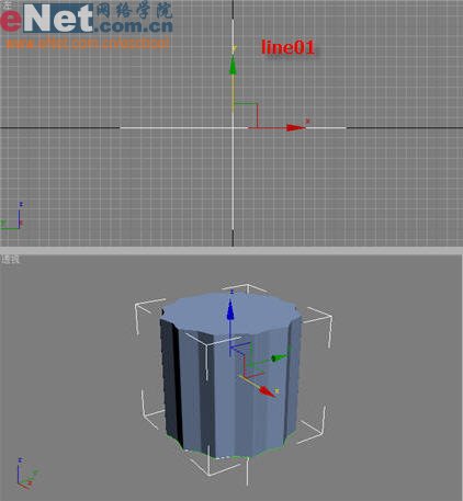2、继续在“图形”创建命令面板中点击“线”按钮,在前视图中新建一线条Line01,然后选择星形Star01,单击“几何体”按钮进入其创建命令面板,在下拉列表中选择“复合对象”项,单击“放样”按钮进入其属性面板,单击“获取路径”按钮,在视图中单击“Line01”,得到放样物体“Loft01”,如图2所示。