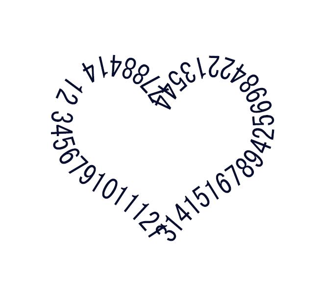 3、选择“直排文字工具”,把鼠标放在心形路径上,输入文字或是数字;