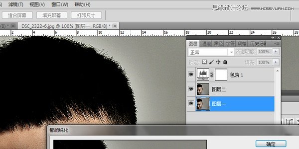 第六步:选中图层一,在滤镜中选择→锐化→智能锐化。【这一步很重要,皮肤的质感就靠这一步了。调整后,皮肤的纹理基本上就比较清晰了,沧桑感也出来了】