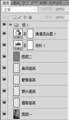第十步:色阶与通道混合器两个图层互相调整,边调边注意照片的细微变化。