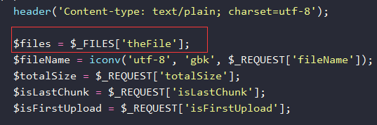 } // 否则继续追加文件数据 if (!file_put_contents('upload/'. $fileName, file_get_contents($_FILES['theFile']['tmp_name']), FILE_APPEND)) {