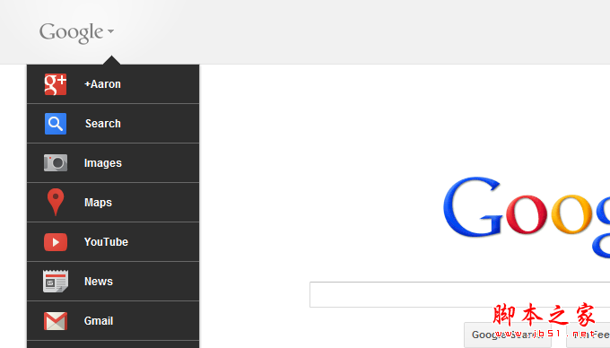 新的菜单栏合并了Google的导航栏以及搜索栏、Google+工具栏。保留了搜索栏和导航栏中所有产品功能,同时产品之间还能进行简单的切换。只需简单滚动google的logo,一个下拉式的菜单便会出现,用户可以有效便捷的在Gmail, Docs, Maps, YouTube 以及其他产品之间转换。