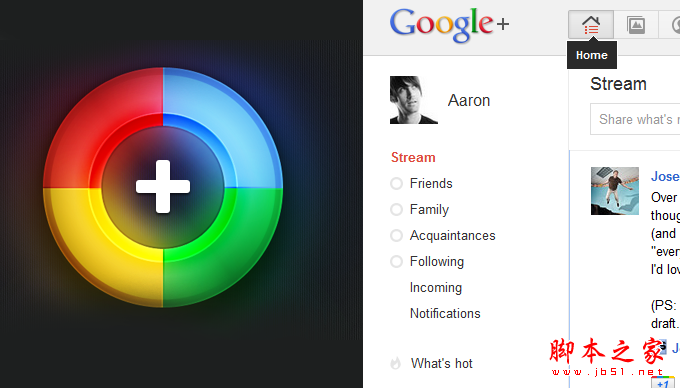 Google的进行改版时恰逢遇上今年最关系的一个网络项目:Google +。比起其他Google的其他产品,Google +可能更好的展示了其新的设计原则。对于产品发布后的预期,如果有一个产品需要被用于吸引用户,那Google +首当其冲。它完美的展示了Google的设计理念,在我加入圈子的没几天,我发现自己已陶醉在其简单的设计中了。