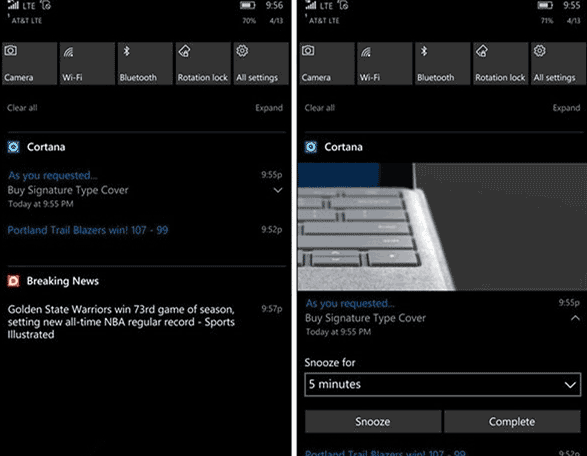 操作中心 cortana 通知:为Cortana添加新的分析功能,确保不会错过任何重要事情,如会议冲突等都会及时提醒。