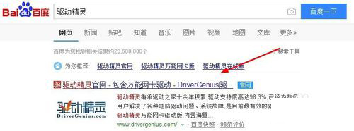 1、首先,我们百度搜索驱动精灵,然后进入驱动精灵官方网站下载驱动精灵到自己的电脑上。