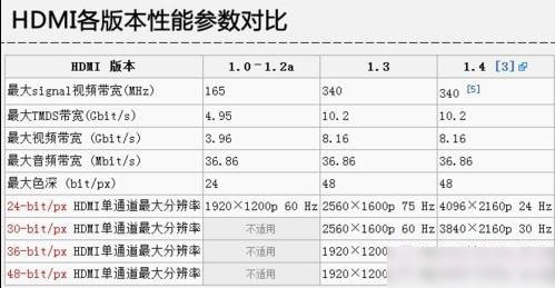 其实HDMI高清接口版本是有多个的,这些可能大家都不怎么了解,下面编辑附上HDMI高清接口不同版本对照图: