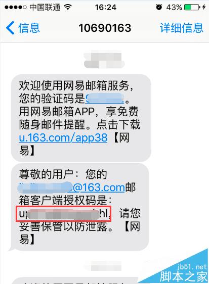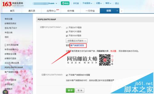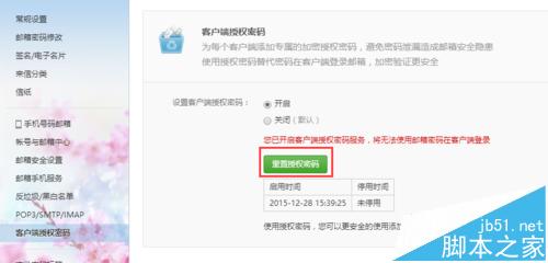 5、需要注意的是开启POP3和IMAP功能之后,手机还会收到一条包含客户端授权码的短信,通过邮箱也可以重置该授权密码,如下图所示。