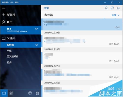 7、正确输入获取到的客户端授权密码之后,win10邮箱即可开始检索163网易邮箱上的邮件了,如下图所示。