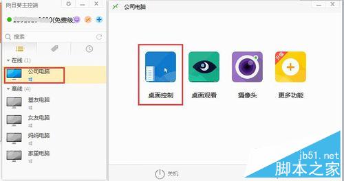 点击在线主机,在功能界面上选择桌面控制,就能远程桌面连接受控端电脑了