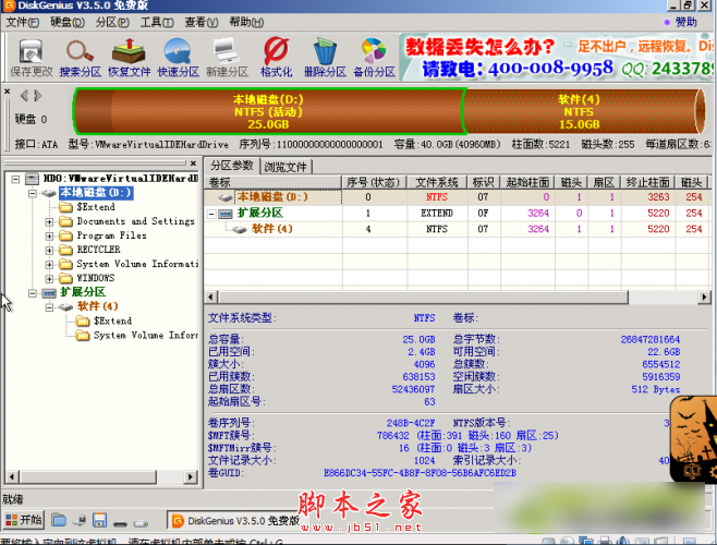 2.打开diskgenius分区工具 可以看到硬盘的数据全都完蛋了