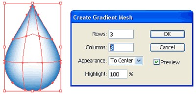选择第一个网格点,选择一个浅蓝色水滴的基础。 下添加一个第三点,将其设置为白色。 最后,选择中间点和深蓝色。