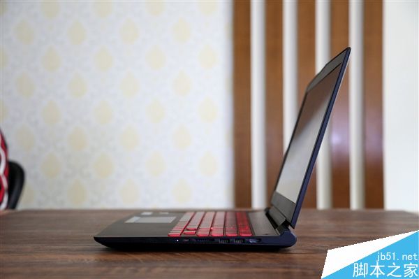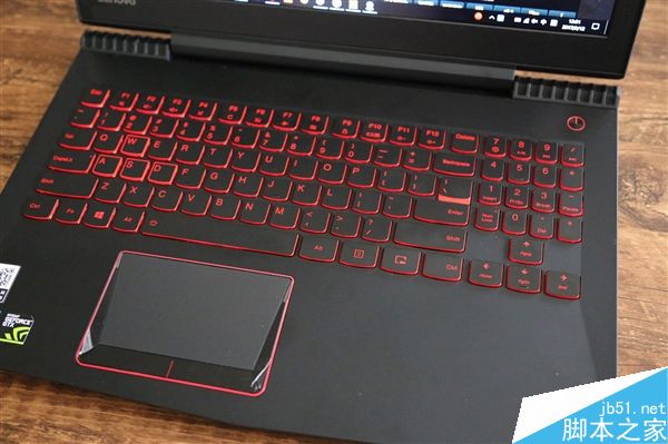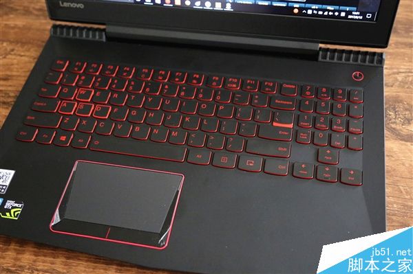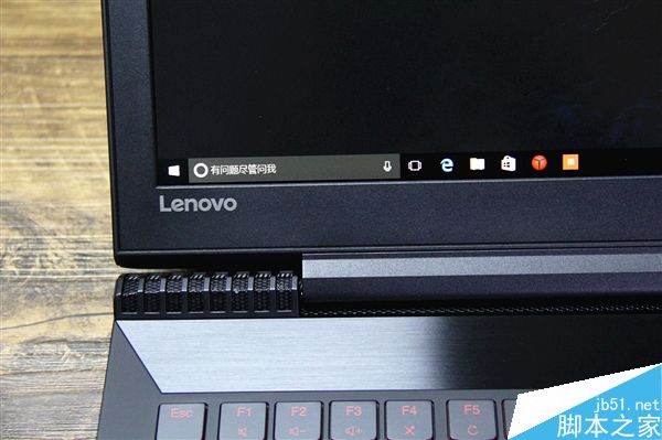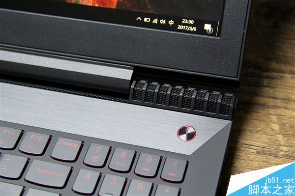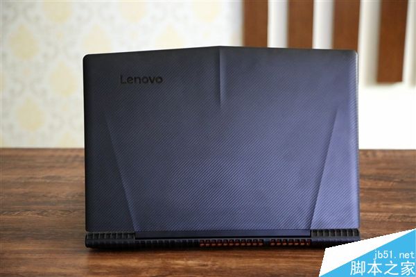 拯救者R720采用了仿碳纤维纹理机身,有效防治指纹沾染。前端外壳采用斧刃式前冲设计。