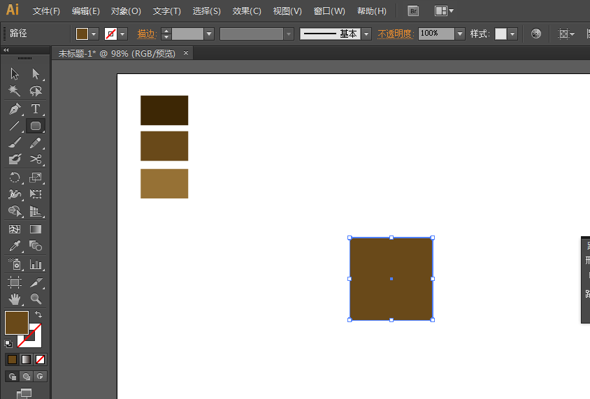 2、先画一个正方形,用矩形工具。然后复制并且移动。然后进行分割,删除不要的部分,并且填充不同的颜色。