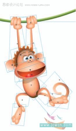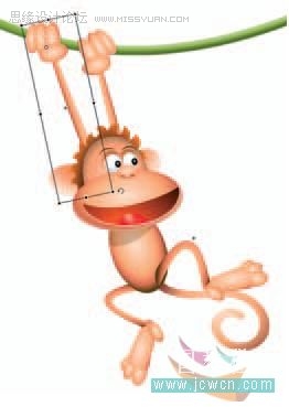 10. 旋转手臂使它与猴子的新位置连接。它们的中心点被定到手抓住藤的位置会更容易一些。