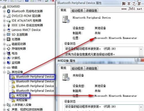 windows系统及蓝牙模块厂商所带的驱动均是针对一些常用的蓝牙功能,如果连接蓝牙设备的服务功能较多,但vista系统及驱动不具备,就会产生Bluetooth Peripheral Device设备或未知设备。