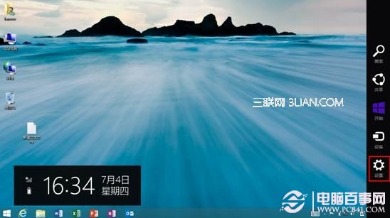 1. 鼠标移动到屏幕的右上角,选择“设置”;