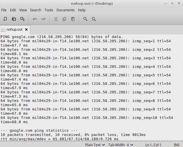 其会在同一目录中生成名为nohup.out的文件,内里包含当前运行程序的内容: