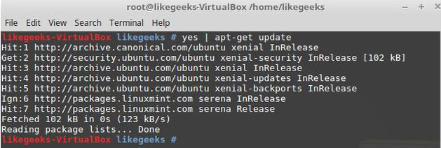 如果大家希望以自动方式对请求回复yes,则可使用:yes | apt-get update。