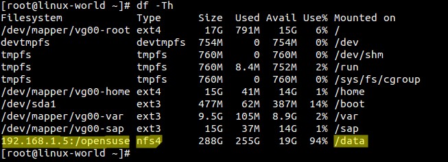 [root@linux-world ~]# df -t nfs4