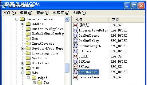 其次在该编辑界面的左侧显示区域,用鼠标展开HKEY_LOCAL_MACHINE注册表分支,从其后弹出的分支列表中依次选中SYSTEMCurrentControlSetControlTerminal ServerWdsrdpwdTdstcp子键,在tcp子键所对应的右侧显示区域中,我们会看到一个名为PortNumber的子键(如图1所示),这个子键其实就是用来定义远程桌面端口号码的,将该子键的数值设置成其他端口号码,例如可以将其数值设置成“9999”;