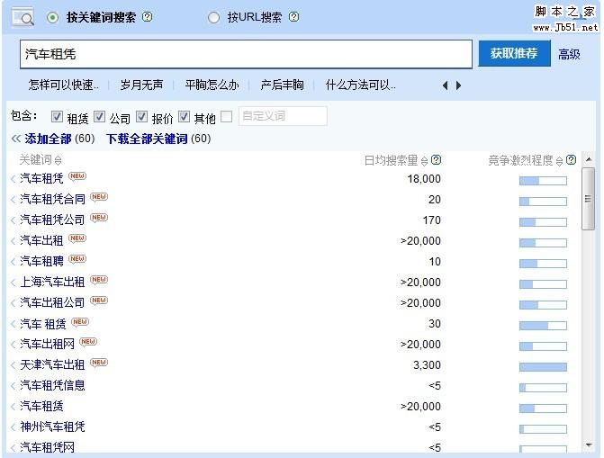 1、复数形式——这是一个普遍的关键词扩展方法。你可以把“大量汽车租凭”加到你的关键词表单中去。