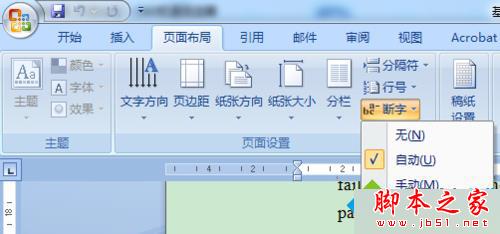 查看是否勾选了“自动断字功能”,页面布局-》页面设置-》断字-》自动;