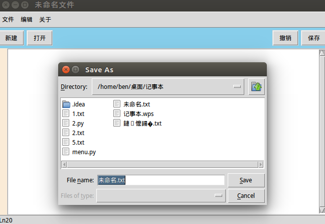 f = asksaveasfilename(initialfile= '未命名.txt', defaultextension='.txt')