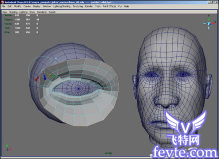 我从头部的基本建模开始。没有用任何的参考图片和模型样纸。而是使用了一种不同的方法去做。我通常会用模型样纸和从多边体开始拉伸面部,逐步添加细节。但是,对于这个模型我是从多边形开始然后拉伸边线。在完成了头部的时候,我发现这种方法十分方便。所以决定用同样的方法来完成剩下的建模。