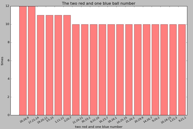 以上就是羞涩狗最近收集整理的关于Python数据分析之双色球统计两个红和蓝球哪组合比例高的的全部内容,更多相关Python数据分析之双色球统计两个红和蓝球哪组合比例高内容请搜索靠谱客的其他文章。