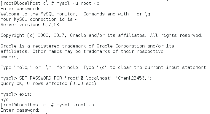 SET PASSWORD FOR 'root'@'localhost'="Chen123456."; exit;