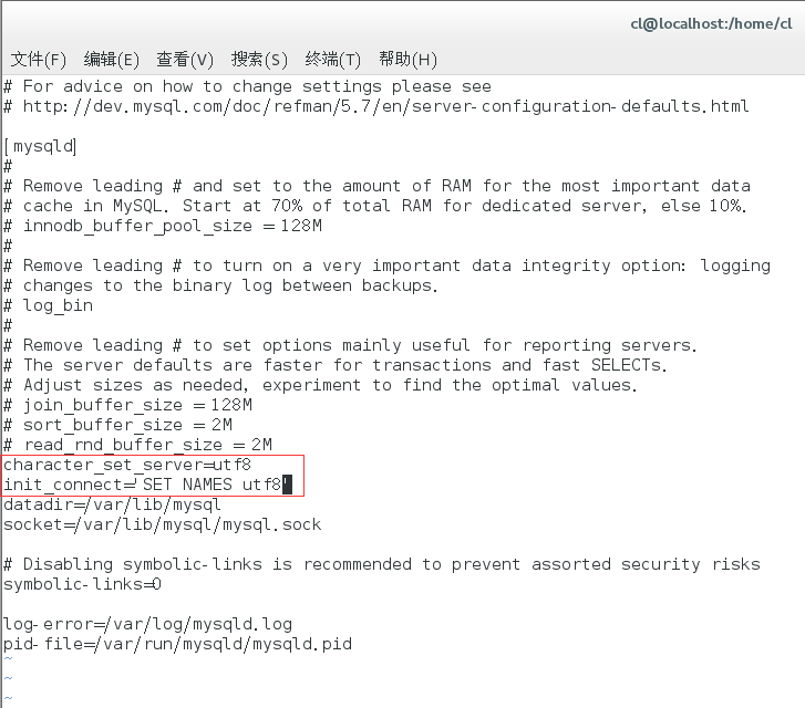 vi /etc/my.cnf