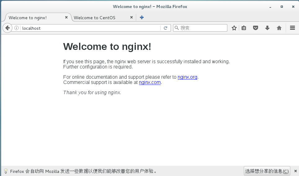 这时我们打开浏览器,访问localhost如果出现Welcome to nginx!那么nginx就安装成功了