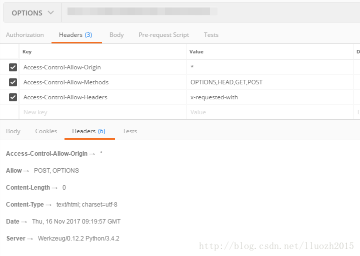 由于项目中路由是多级路由,通过主路由跳转到子路由,一开始的时候,允许跨域的配置在上传文件的子路由中进行设置,发现OPTIONS请求响应值中并没有返回预期的头文件,将跨域设置在主路由中设置即可