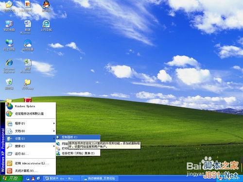 点击“开始”中的“设置”按钮,选择“控制面板”,如下图所示: