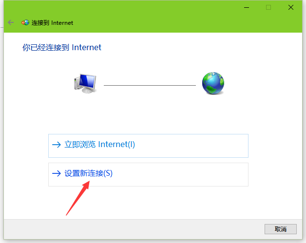4、点击“设置新连接”;