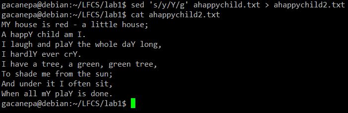 #sed's/y/Y/g' ahappychild.txt > ahappychild2.txt
