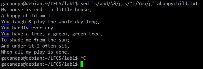 #sed's/and/\&/g;s/^I/You/g' ahappychild.txt