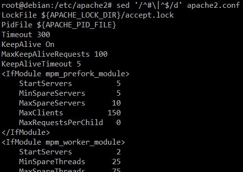 #sed'/^#\|^$/d' apache2.conf