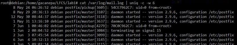 #cat/var/log/mail.log |uniq-c -w6