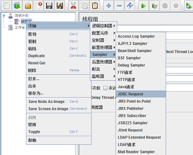 6、添加线程组-JDBC Request