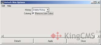 Detach Skin有时需要重新修改骨骼,重新设置骨骼的绑定姿势或对皮肤做进一步的建模。这时首先需要将骨骼与皮肤之间的关联断开,然后进行必要的修改,修改完后,再重新连接皮肤与骨骼。
